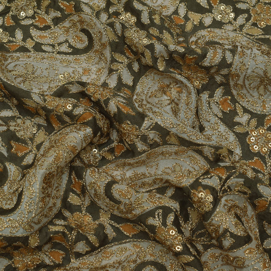 Multi Color Chinon Chiffon Position Print Embroidery Fabric