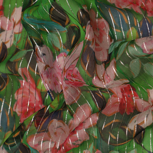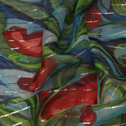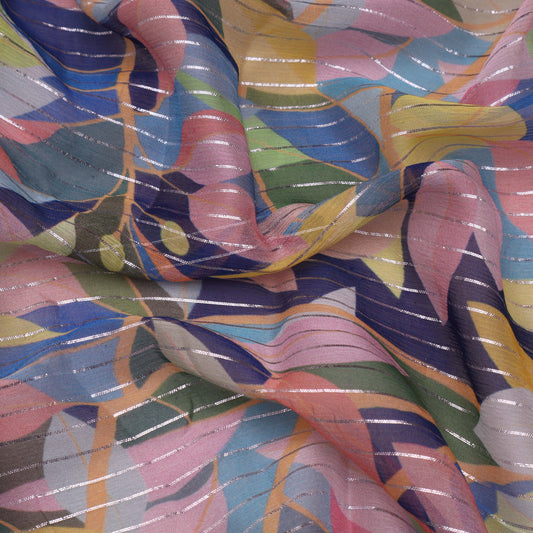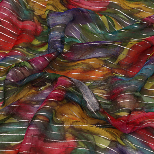Multi Color Chiffon Lurex Hydra Print Fabric