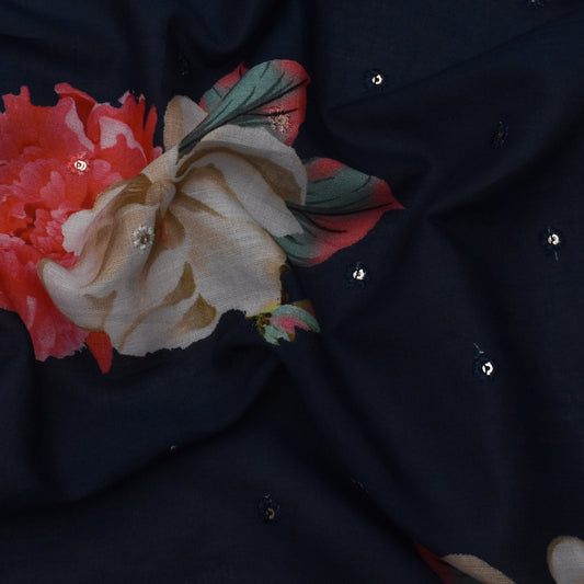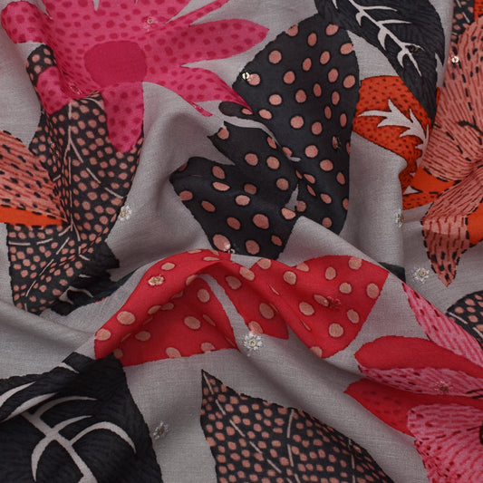 Multi Color Mulmul Plazo Print Embroidery Fabric