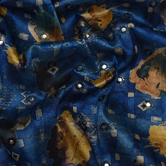 Multi Colored Armani Satin Print Fabric (Cut Pieces 4Mtr)