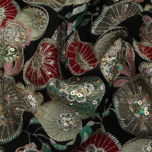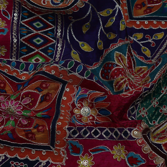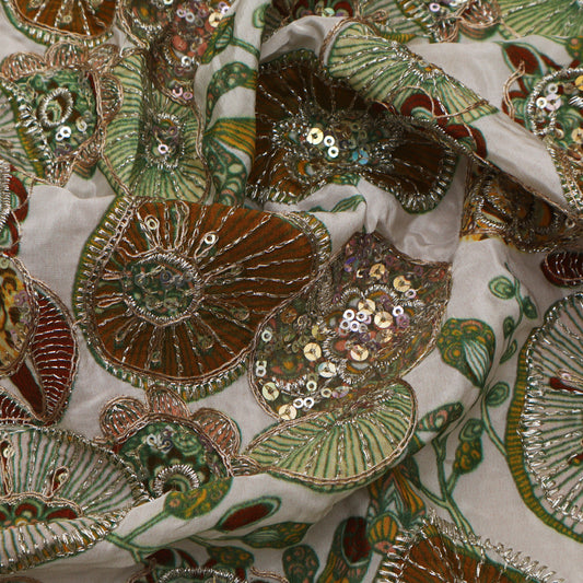 Multi Colored Cotton Chikan Border Print Embroidery Fabric