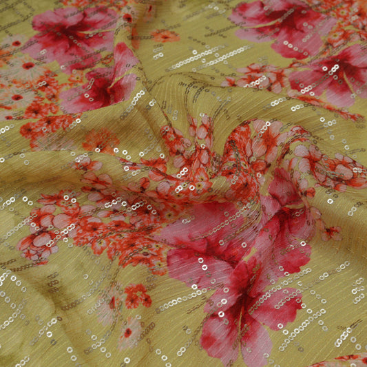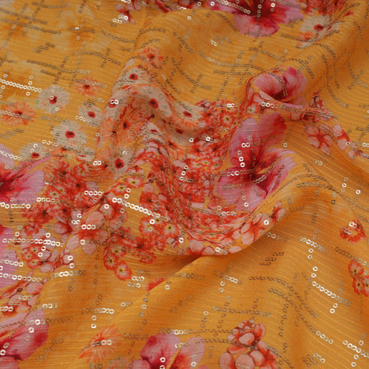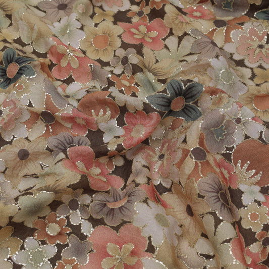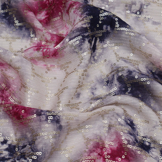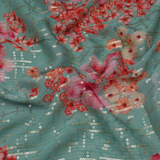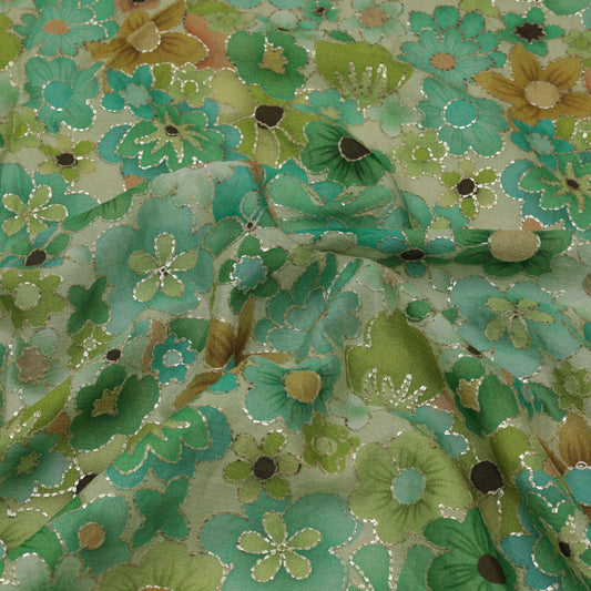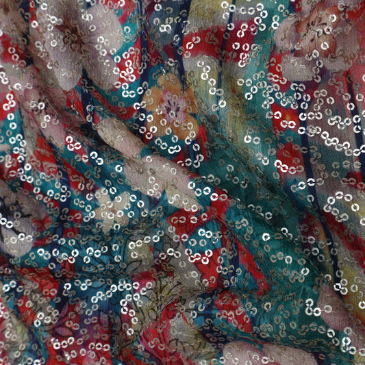Multi-Color Chinon Chiffon Print Embroidery Fabric