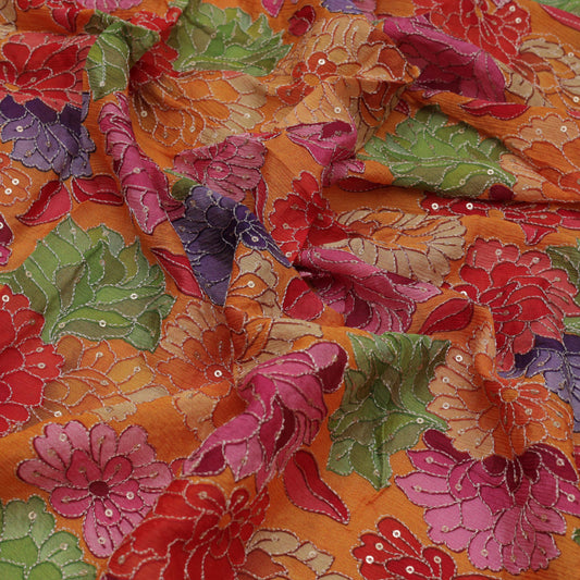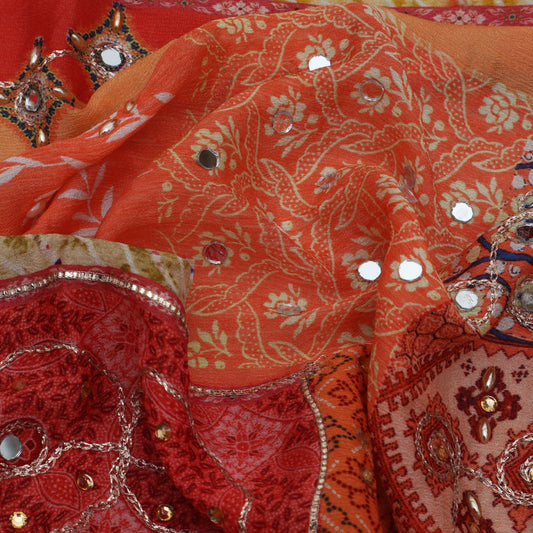 Multi-Color Chinon Chiffon Print Mirror Work Fabric