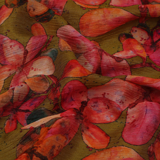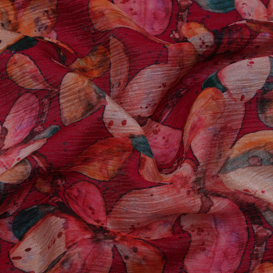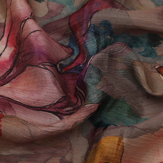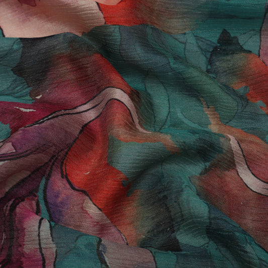 Multi-Color Chinon Crush Print Fabric ( Cut Pieces 3Mtr)