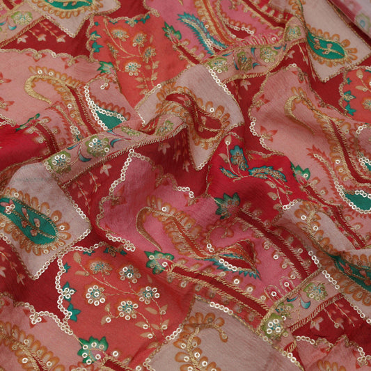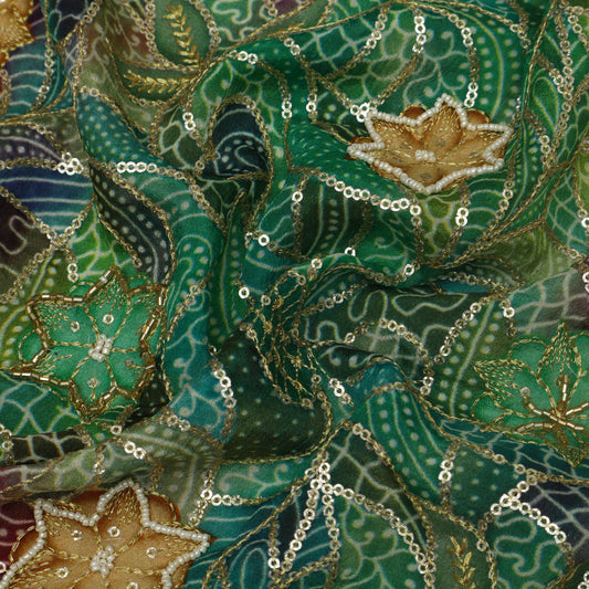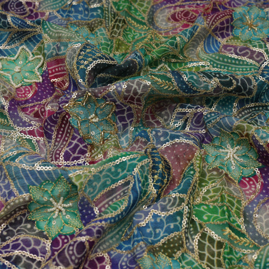 Multi-Color Chinon Hydra Print Gota Work Fabric