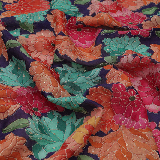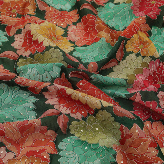 Multi-Color Chinon Chiffon Print Embroidery Fabric