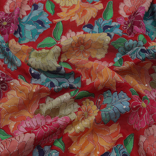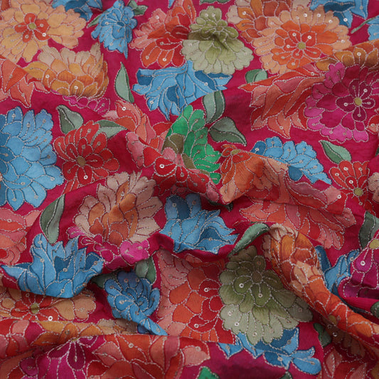 Multi-Color COTTON PRINT KANTHA WORK Fabric