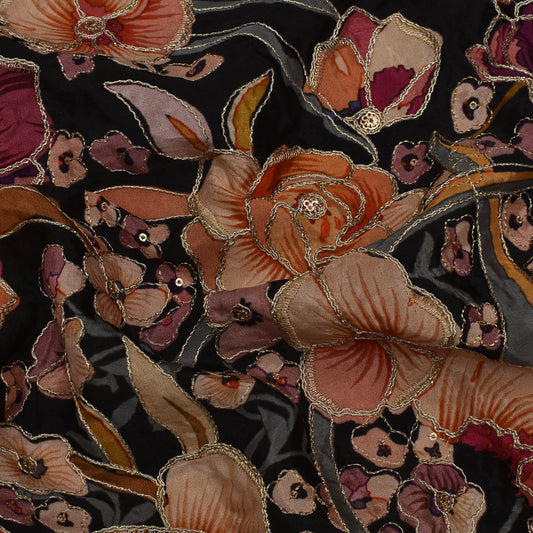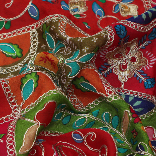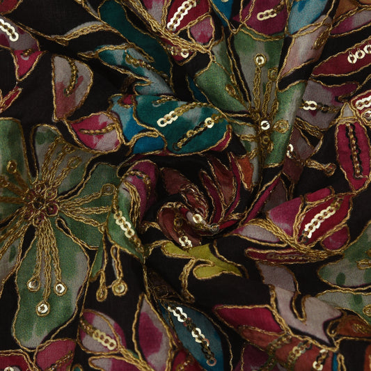 Sold outMulticolor Crepe Embroidery Fabric