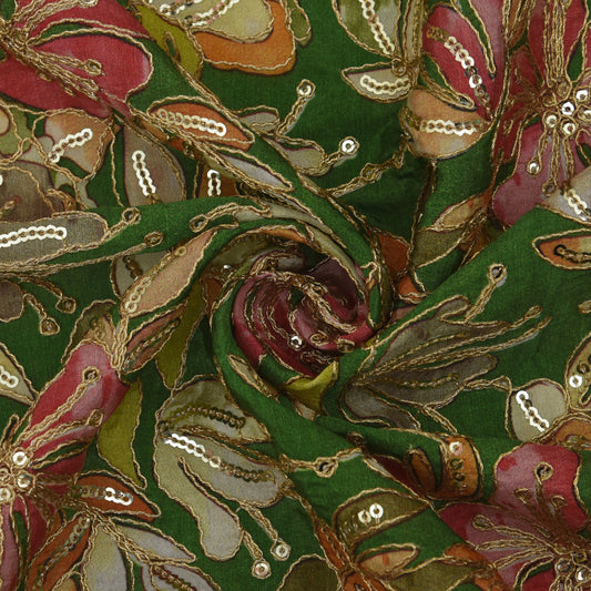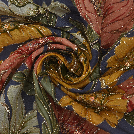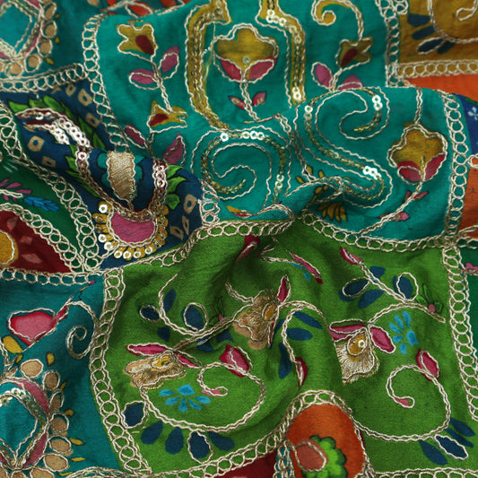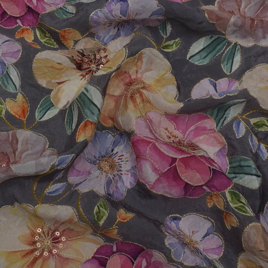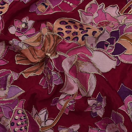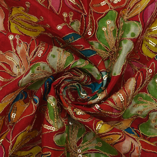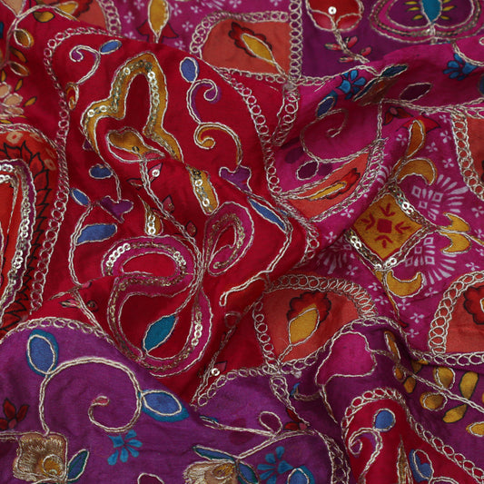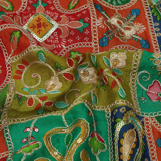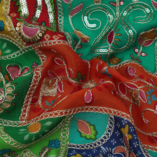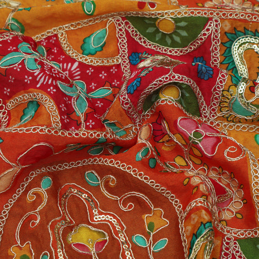 Multicolor Chinon Position Print Embroidery Fabric (Cut Pieces 2Mtr)