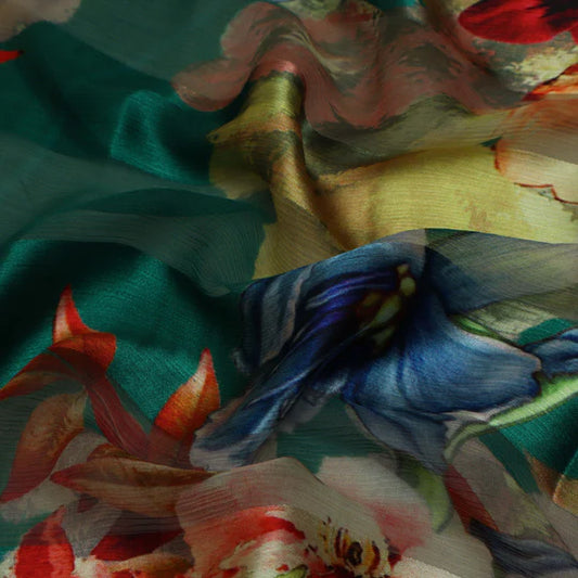 Multicolor Chinon Floral Print Fabric