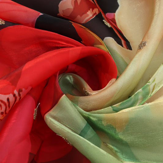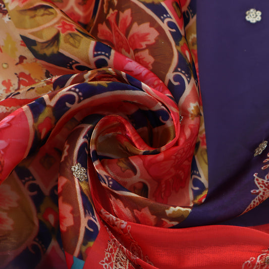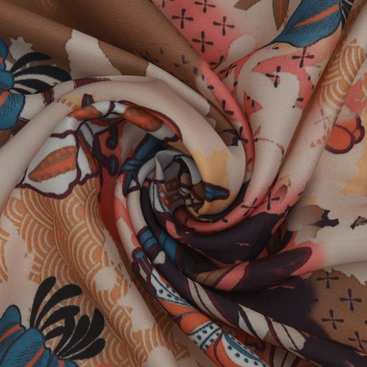Multicolor Modal Satin Print Fabric (Cut Pieces 2.5)