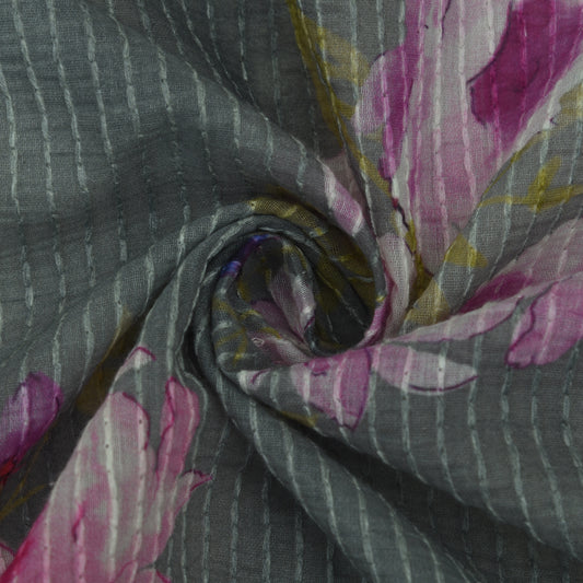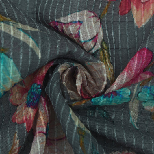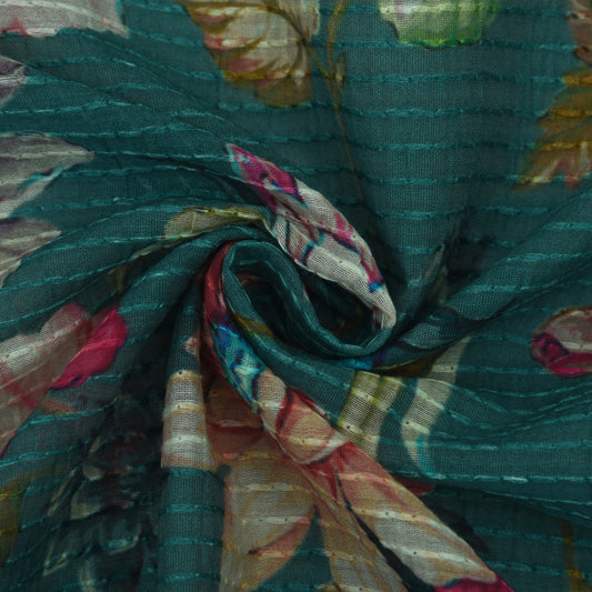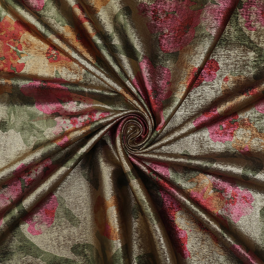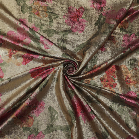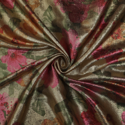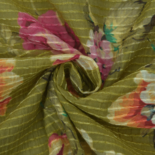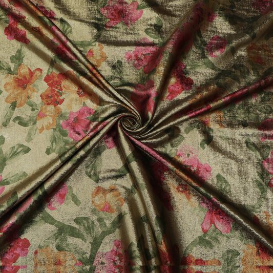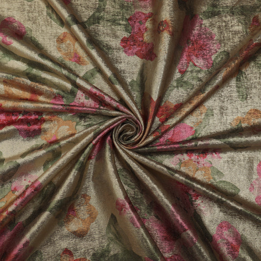 Multicolor Slub Chanderi Print Fabric