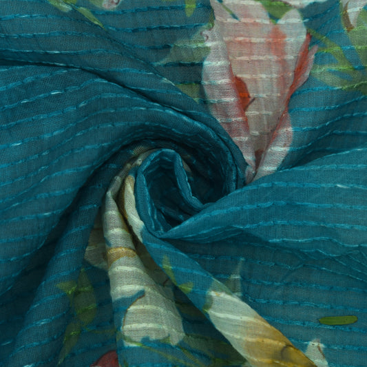 Multicolor Silk Chanderi Print Embroidery Fabric