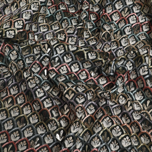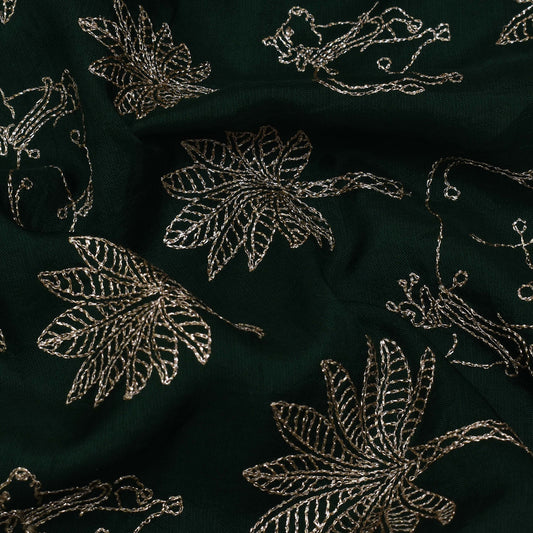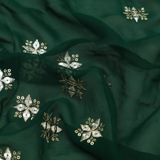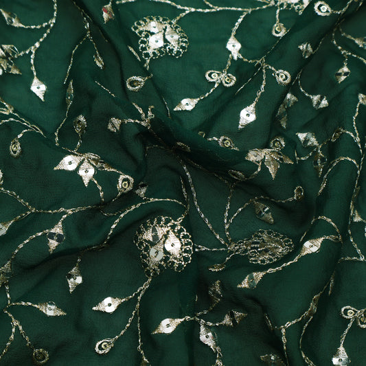 BOTTLE GREEN Color Georgette Embroidery Fabric