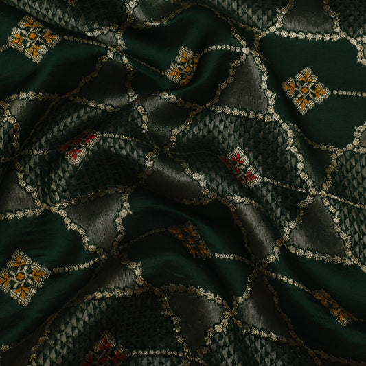 BOTTLE GREEN Color Chaudani brocade Fabric