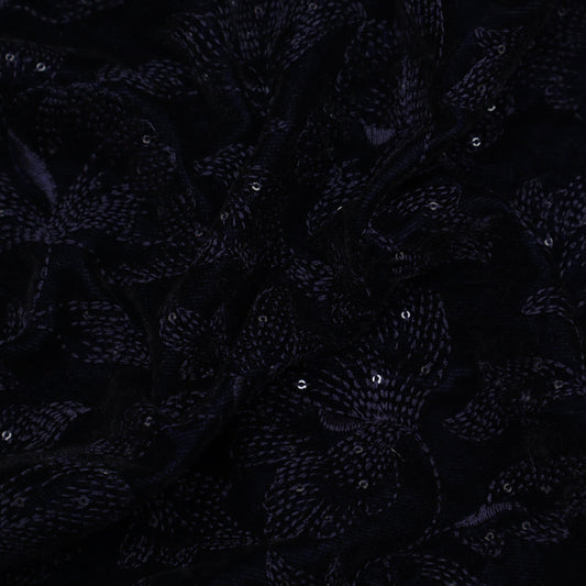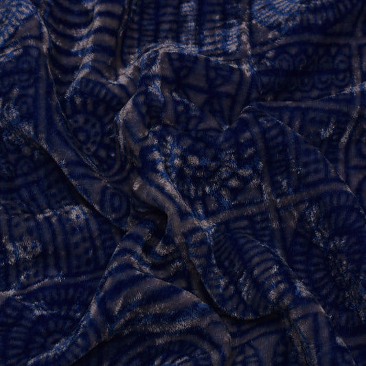 Blue Color Velvet Print Embroidery Fabric (Cut Pieces 1Mtr)