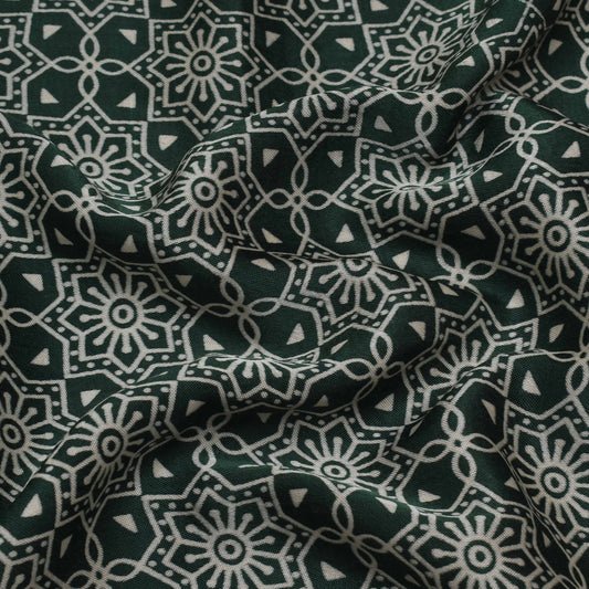 Bottle Green Color Gajji Silk Ajrak Print Fabric