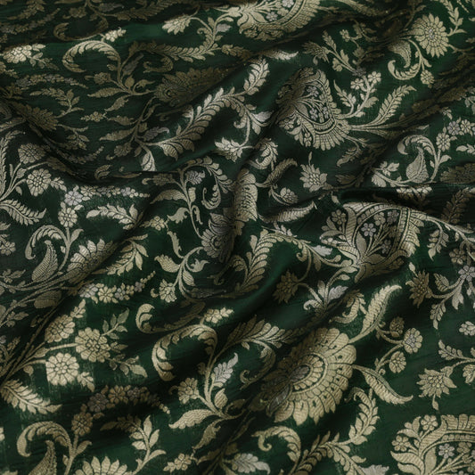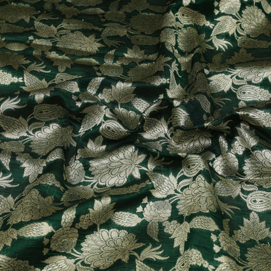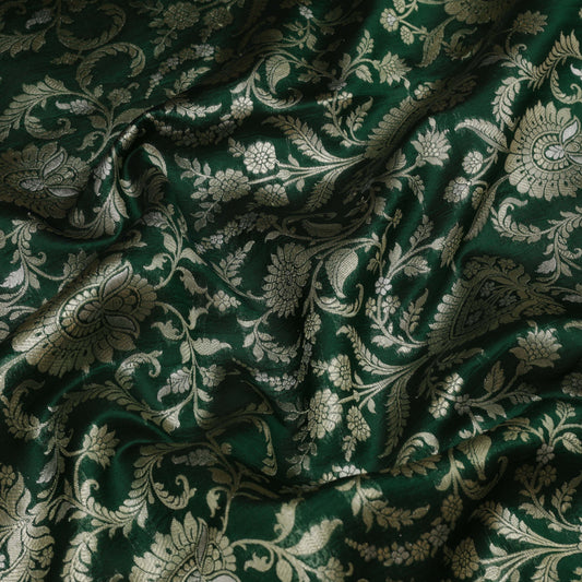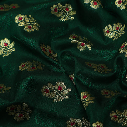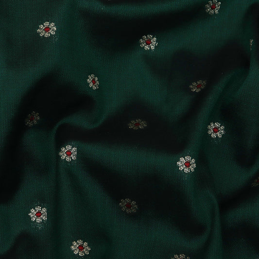 BOTTLE GREEN Color Katan Dupion Silk Brocade Fabric