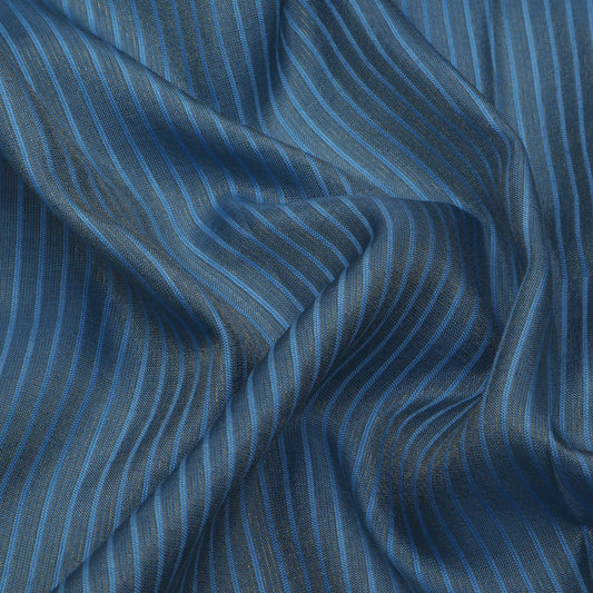 Blue Stripe Chinon Chiffon Print Mirror Work Fabric