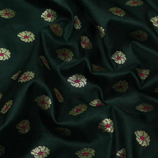 Bottle Green Color Katan Meena Booti Brocade Fabric