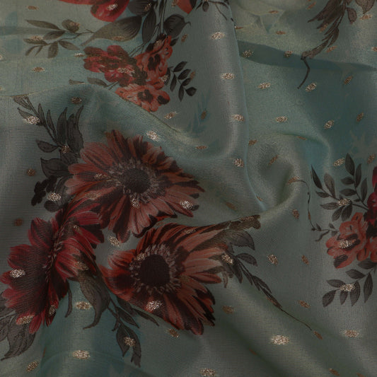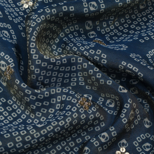 Blue Color Tissue Digital Print Fabric (Cut Pieces 3Mtr)