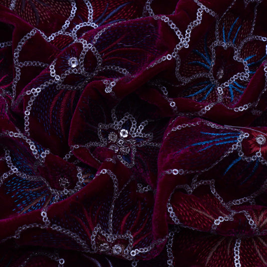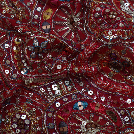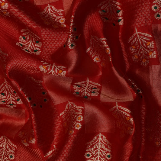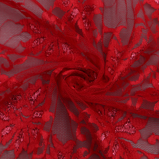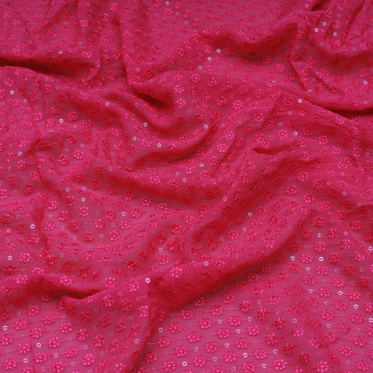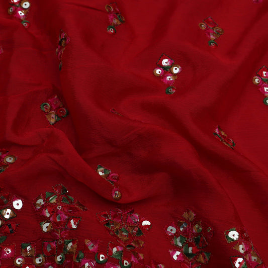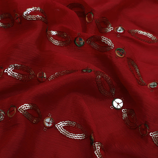 RED Color CHINON STRIPE EMBROIDERY Fabric