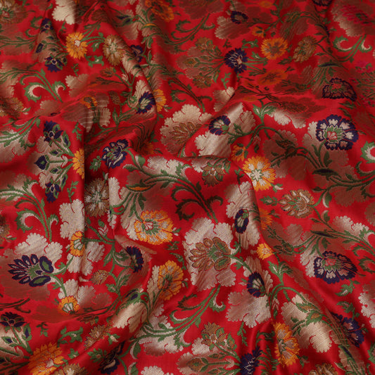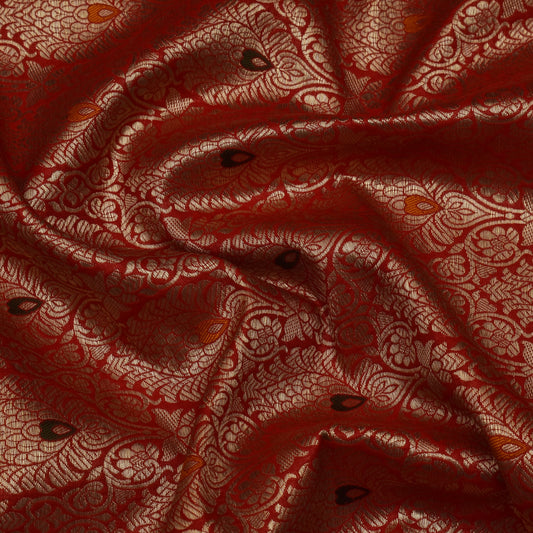 Sold outRed Color Katan Meena Brocade Fabric