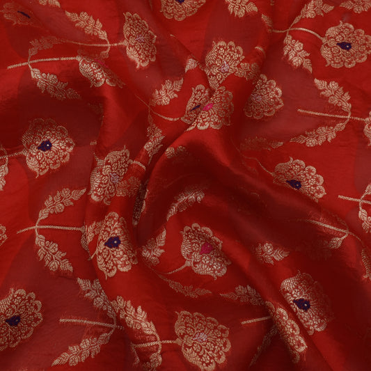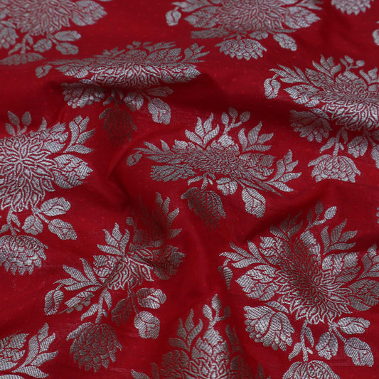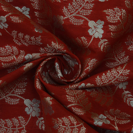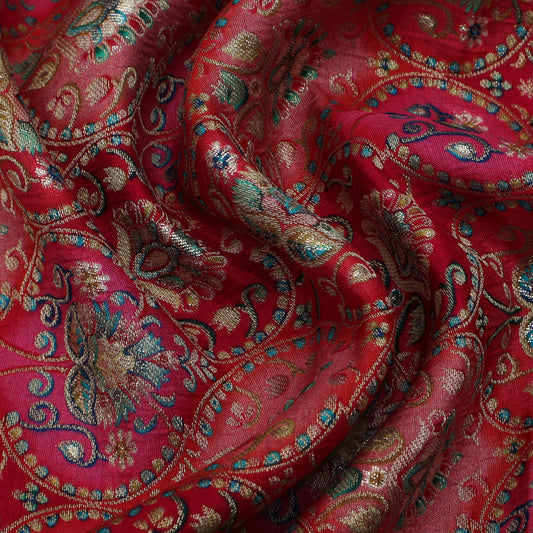 Sold outRed Color Raw Silk Brocade Fabric