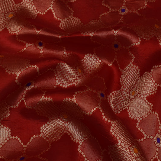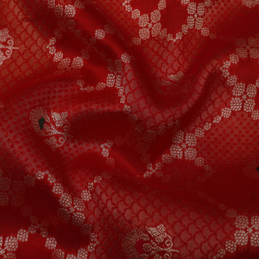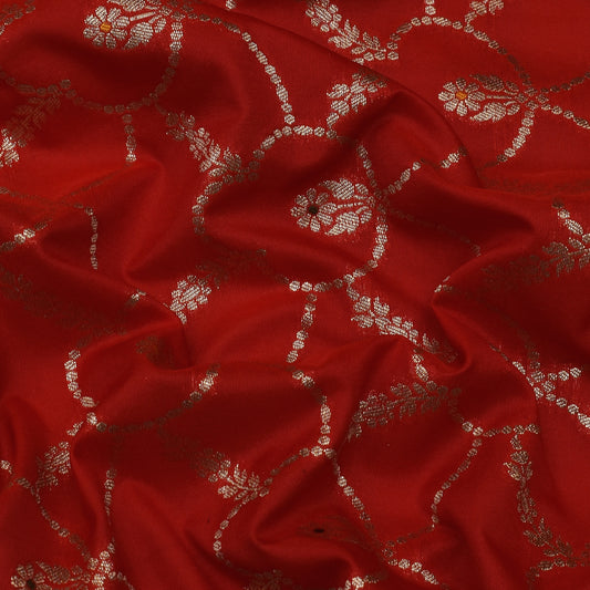 Red Color Katan Meena Jaal Brocade Fabric