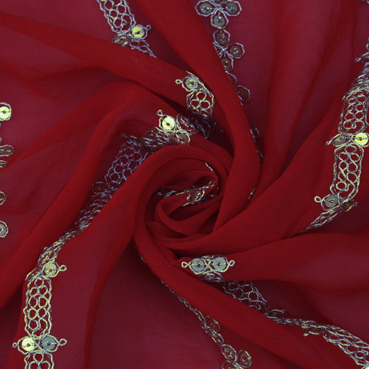 RED Color Georgette Embroidery Fabric