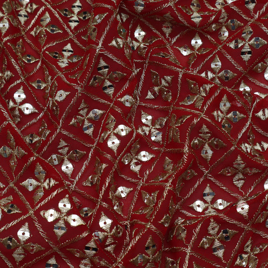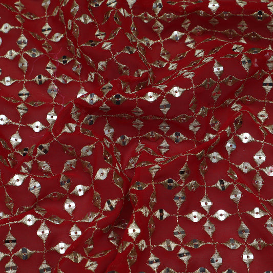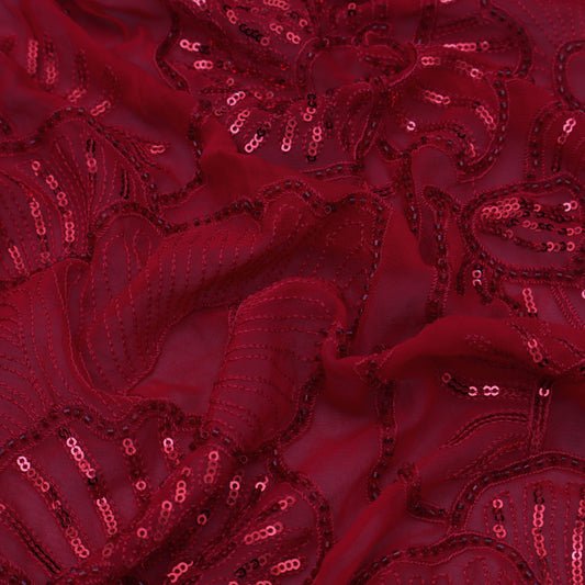 Red Color Net Sequins Embroidery Fabric