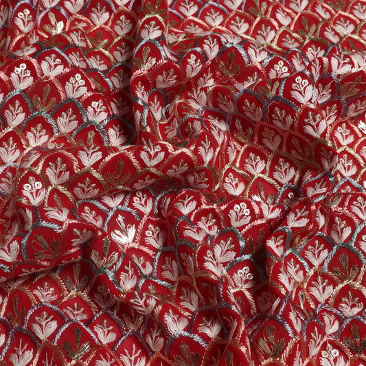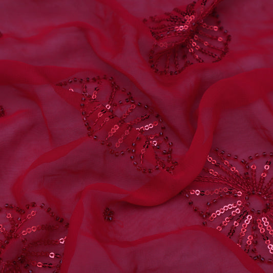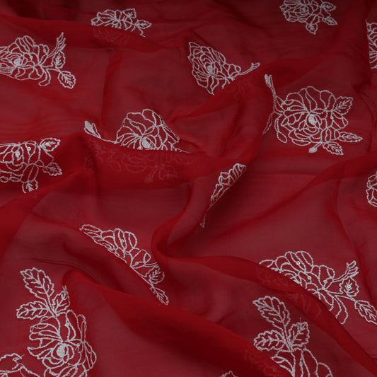 Red Color Georgette Embroidery Fabric