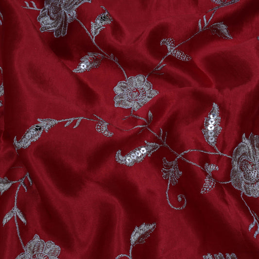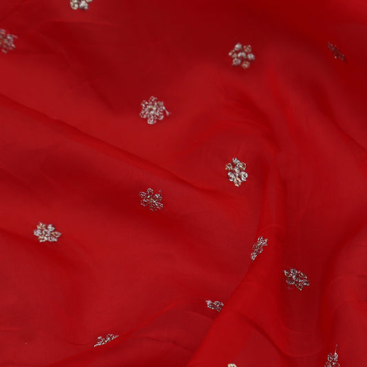 Sold outRed Color Organza Embroidery Fabric