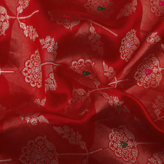 Sold outRed Color Organza Booti Fabric
