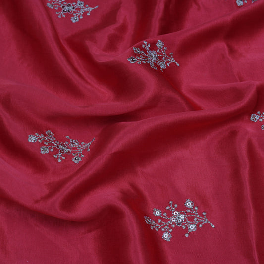 RED Color Gajji Silk Embroidery Fabric
