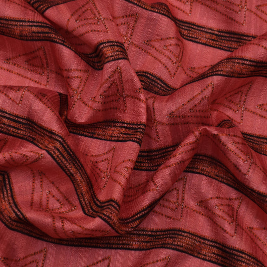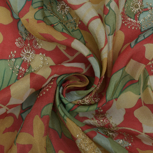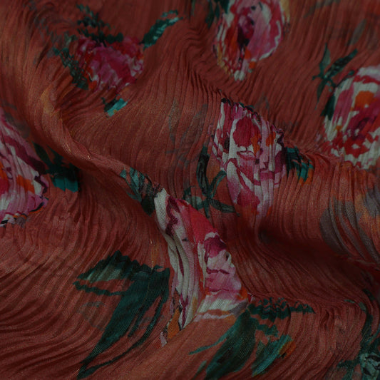 Rose Wood Color Silk Chinon Print Embroidery Fabric