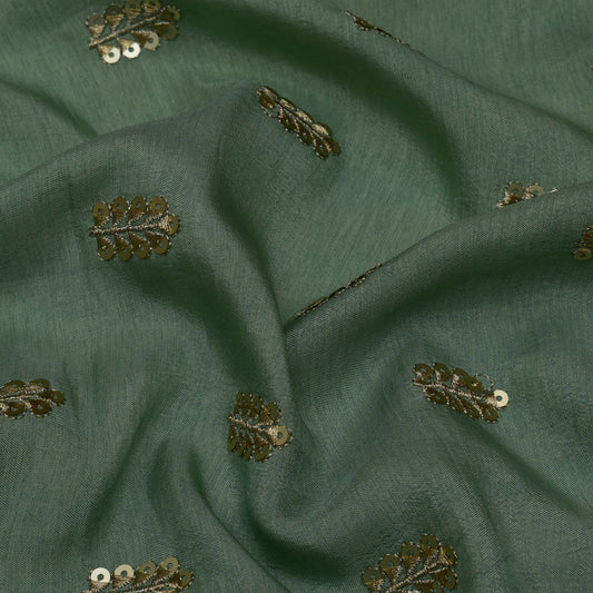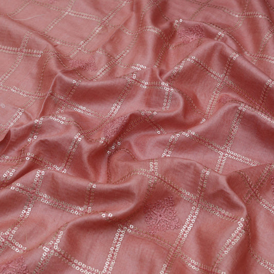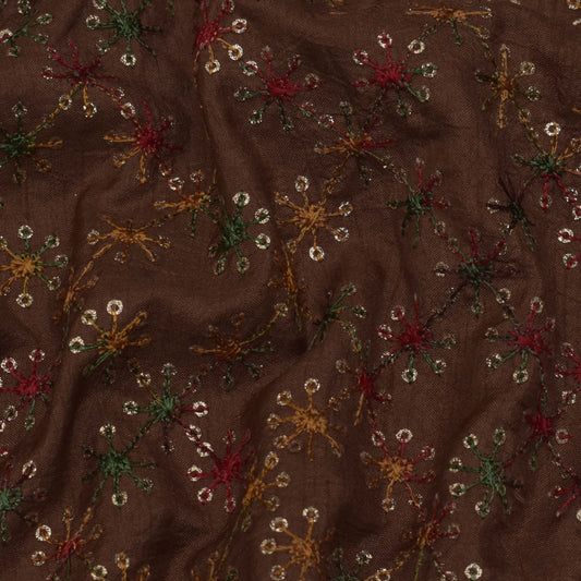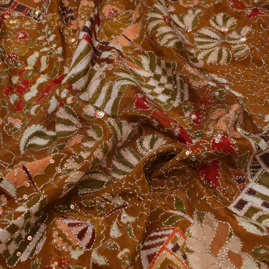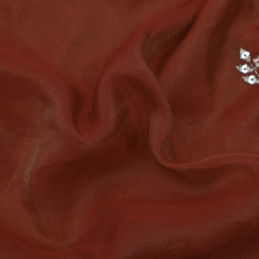 RUST Color Fabric Tussar Sequins Embroidery Fabric