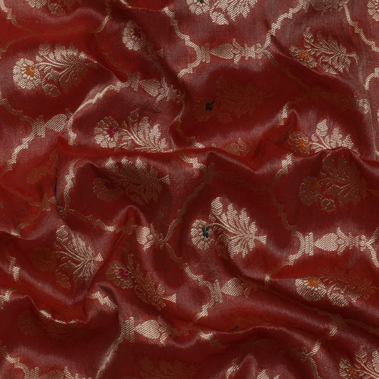 Rust Color Brocade Fabric (Cut Pieces 1Mtr)