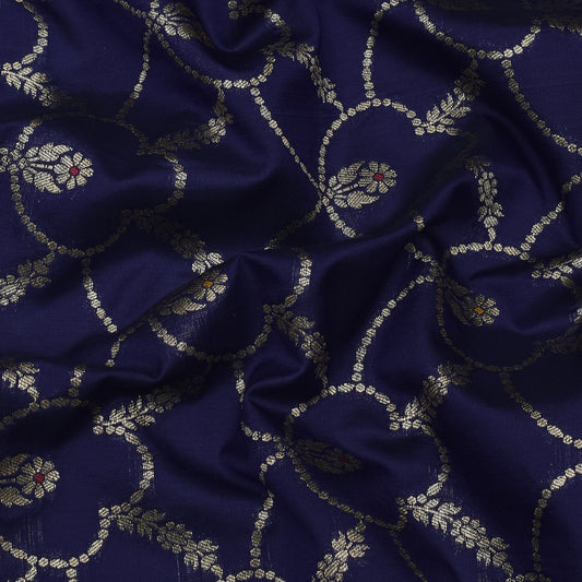Royal Blue Color Chinia Dupion Silk Brocade Fabric