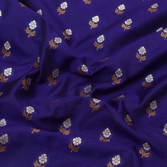 Royal Blue Color Katan Dupion Silk Brocade Fabric