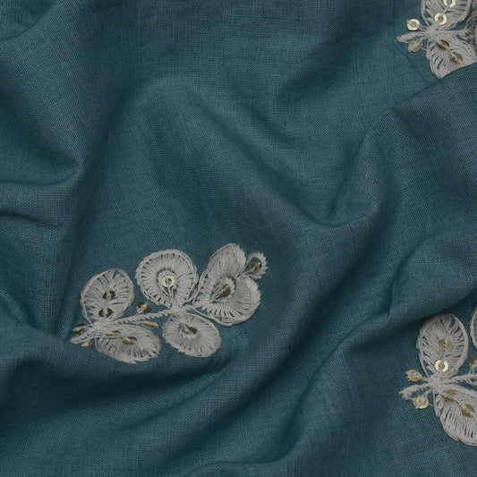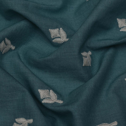 Sea Green Color Cotton Plazo Embroidery Fabric
