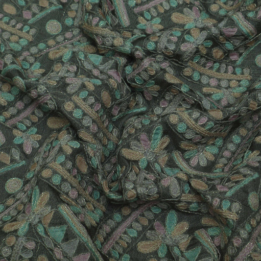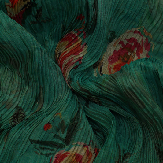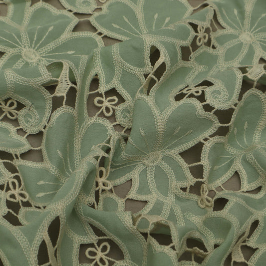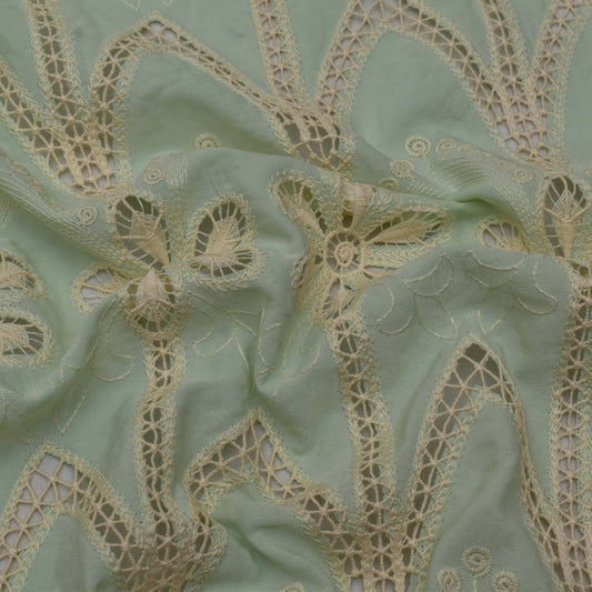 Sea Green Color Crepe Position Print Embroidery Fabric