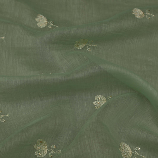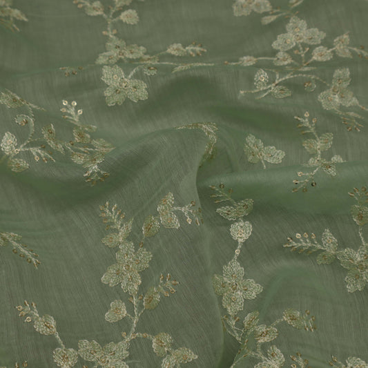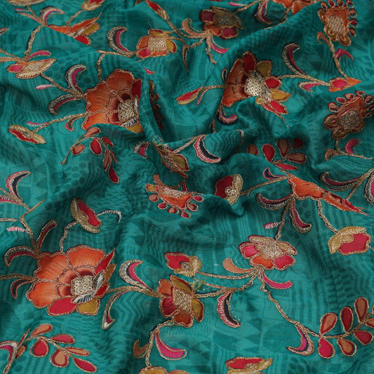 Sea Green Color Chinon Chiffon Position Print Embroidery Fabric