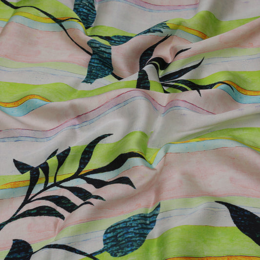 Sea Green Color Chanderi Stripe Embroidery Fabric