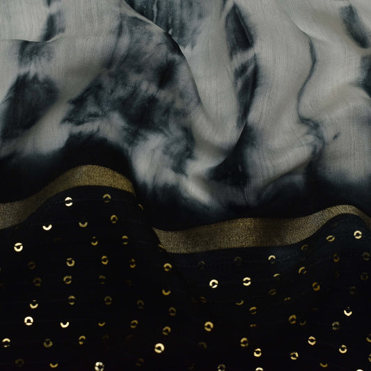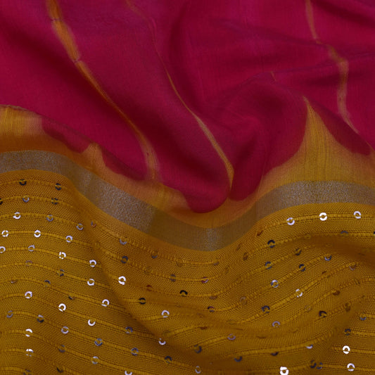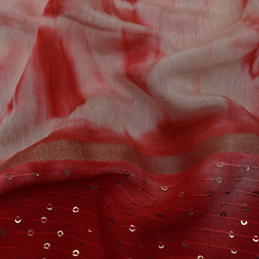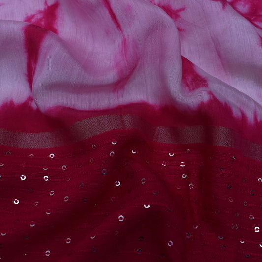 Multi Color Chanderi Tie & Die Border Embroidery Fabric
