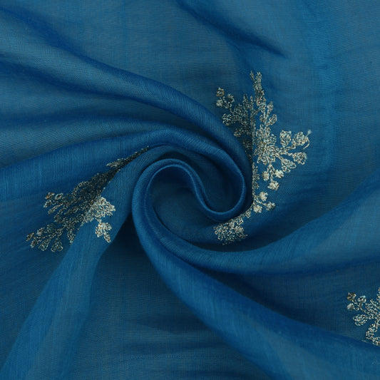 Sky Blue Color Chanderi Embroidery Fabric