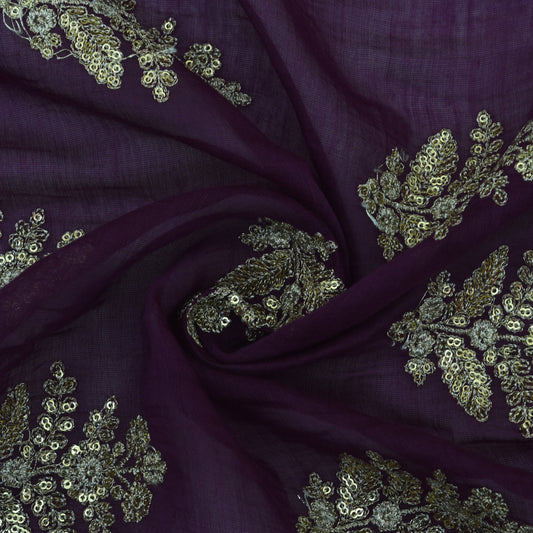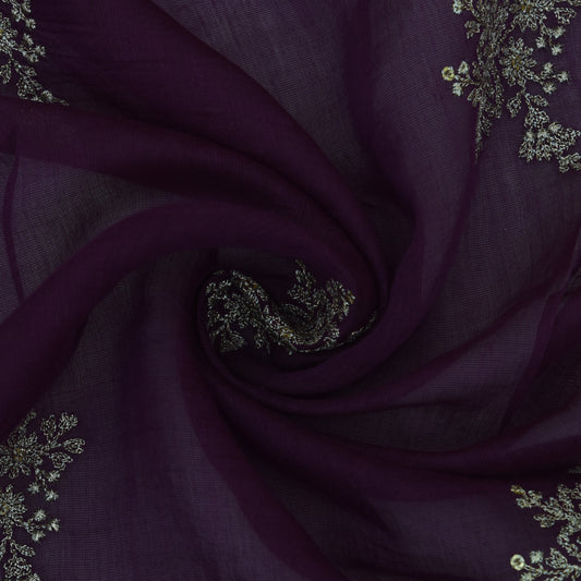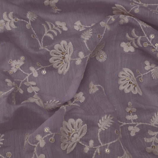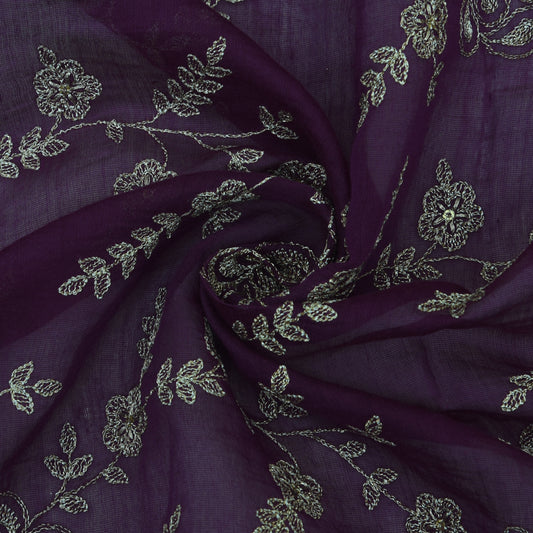 Purple Color Chanderi Embroidery Fabric