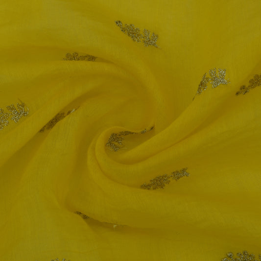 Yellow Color Chanderi Embroidery Fabric
