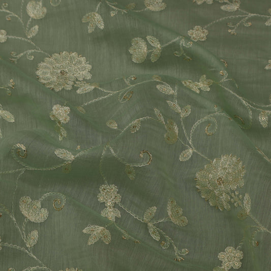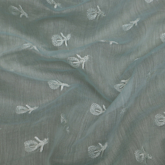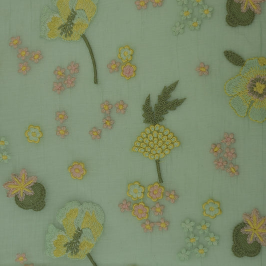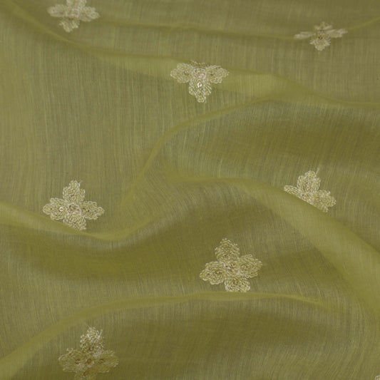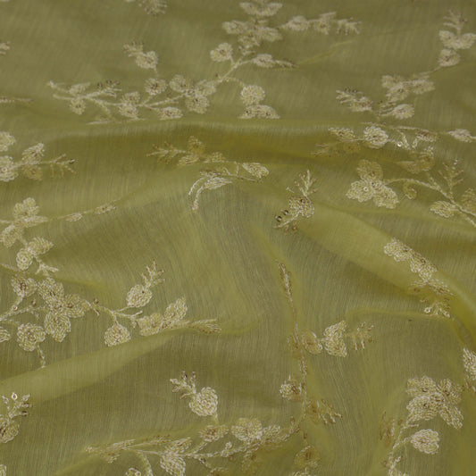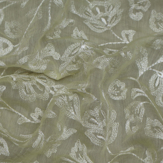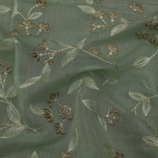 Light Green Color Chanderi Embroidery Fabric