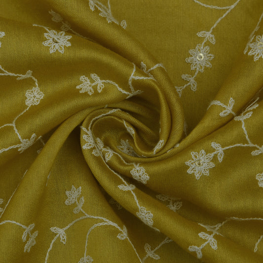 Mustard Color Chanderi Embroidery Fabric